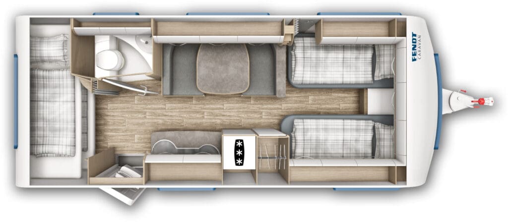 De Fendt Bianco-serie is met maar liefst 17 indelingen, waaronder 5 kindvriendelijke modellen met stapelbedden, de meest veelzijdige caravanlijn binnen het Fendt-programma. Voor modeljaar 2026 is het interieur volledig vernieuwd. Met stijlvolle meubelen in de warme houtkleur “Salvador Oak” en keuze uit twee moderne bekledingsvarianten – “Pineto” en “Savio” – heeft de Bianco een frisse en eigentijdse uitstraling gekregen.